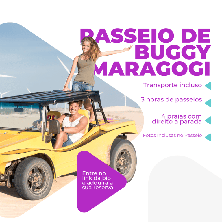 O passeio de buggy do litoral norte , é ideal para quem quer passar mais tempo nas praias e poder realizar as fotos com tempo e paciência, conhecer lugares incriveis e desfrutar da natureza, nesse passeio visitamos as praias mais famosas de Maragogi, sendo elas as praias de Burgalhau, Barra Grande (onde forma o famoso banco de areia chamado de "Caminho de Moises" apenas na maré no nivel abaixo de 0.2), Antunes (a praia batizada como caribe brasileiro pela sua agua azul turquesa), Xaréu (também conhecida como Praia da Bruna, por conta da atris Bruna Lombardi) e praia de Ponta de Mangue.
